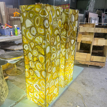 Décoration de maison de luxe personnalisée Pierre précieuse jaune Onyx Cristal Agate Pierre translucide Sol Boîte à lumière