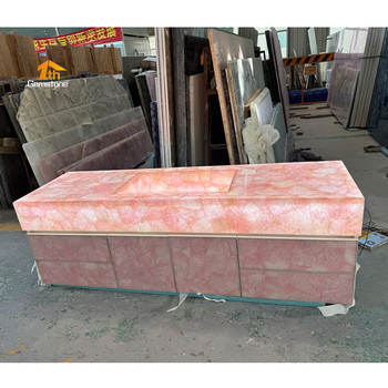 Di lusso naturale retroilluminato rosa cristallo rosa quarzo traslucido pietra di vanità piano di lavoro con lavandino per la decorazione del bagno