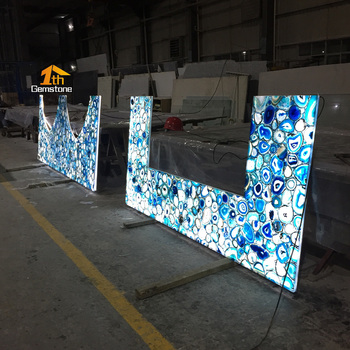 럭셔리 백라이트 블루 마노 스톤 조명 가구 반투명 조리대 식탁 탑