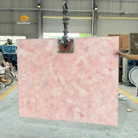 बैकलिट डिजाइन लक्जरी प्राकृतिक गुलाबी गोनीक्स क्रिस्टल गुलाब क्वार्ट्ज पारदर्शी पत्थर स्लैब