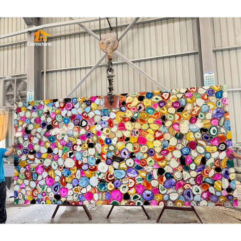 रंगीन इंद्रधनुष बड़े आकार पॉलिश प्राकृतिक बैकलिट मिश्रण क्रिस्टल एगेट पत्थर के लिए स्लैब पत्थर के स्लैब