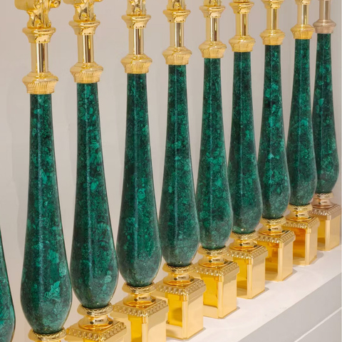 थोक लक्जरी प्राकृतिक हरे मलकाइट सजावट वेस पीतल सीढ़ियों की रेलिंग