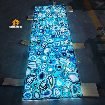 Luxo Backlit Ágata Azul Pedra Iluminado Móveis Translúcido Bancada Mesa De Jantar Top